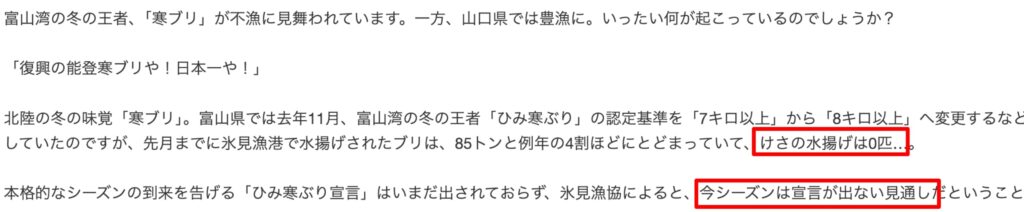観光や旅行で富山にくる人はもちろん、富山県民も待望の「氷見寒ブリ宣言」。